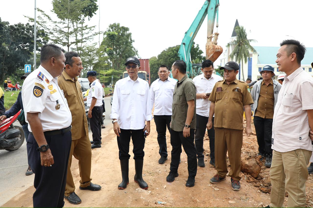 BATAM – Wali Kota Batam, Amsakar Achmad, meninjau langsung pengerjaan box culvert dan peningkatan jalan di Simpang Helm, Jalan Raja Isa, Batamcenter, Senin (13/10/2025).